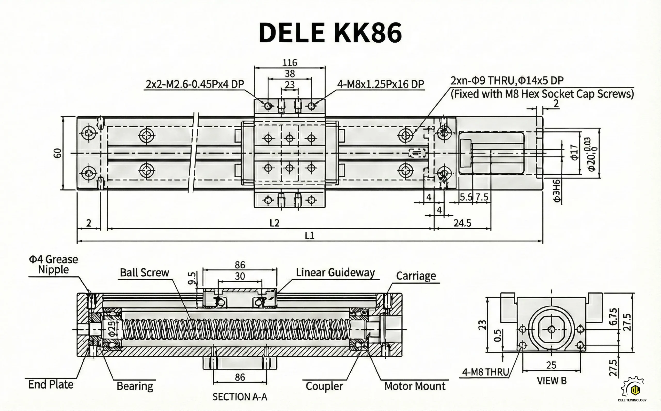 The KK86’s standard Ø20mm lead screw boasts approximately 2.4 times the sectional rigidity of a Ø16mm lead screw.